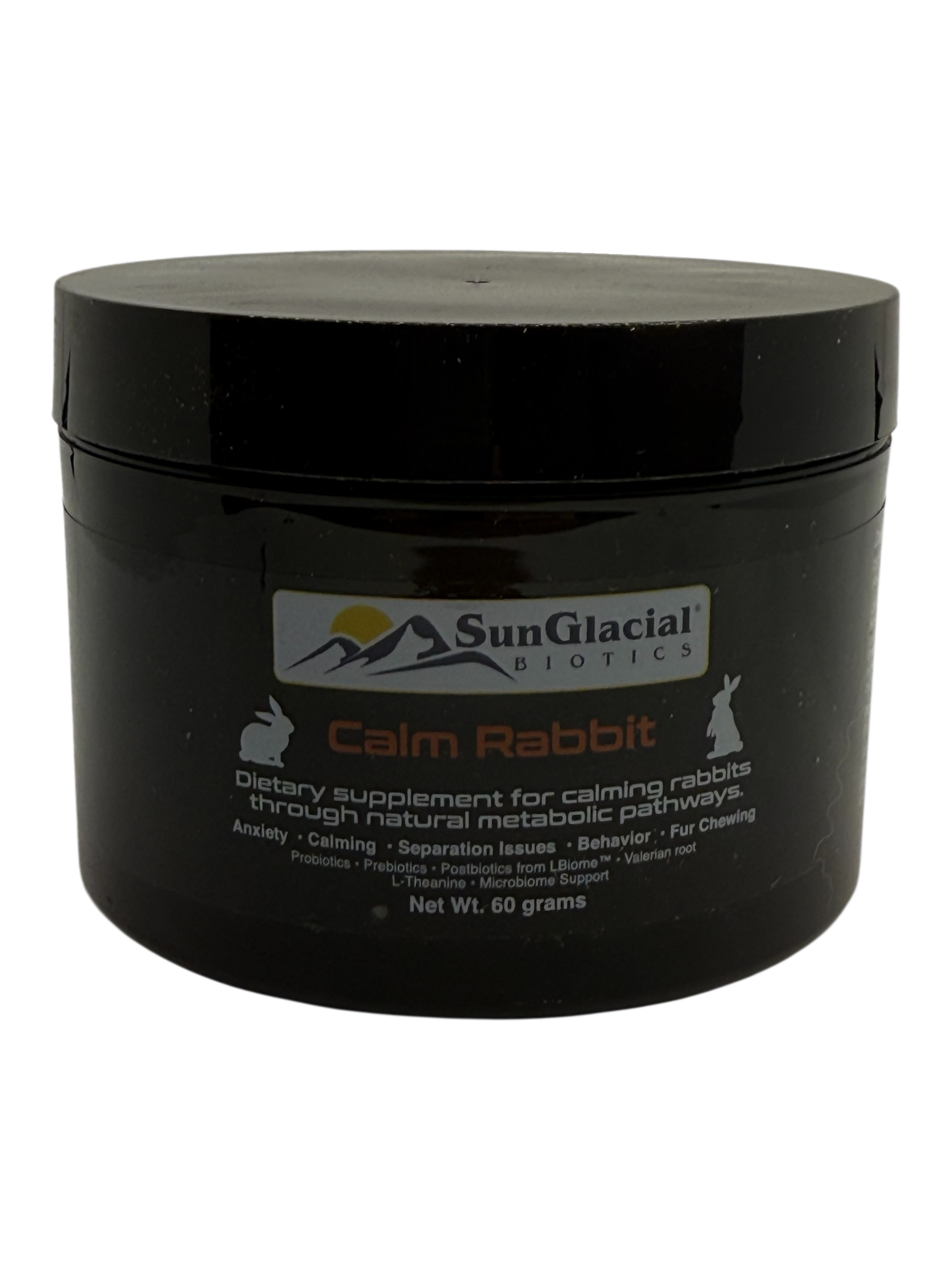 SunGlacial Calm Rabbit™ is a targeted calming and gut-support supplement formulated to help rabbits manage stress-related behaviors through natural metabolic pathways. This advanced formula combines calming botanicals and amino acids with comprehensive microbiome support to promote balanced behavior and digestive health.